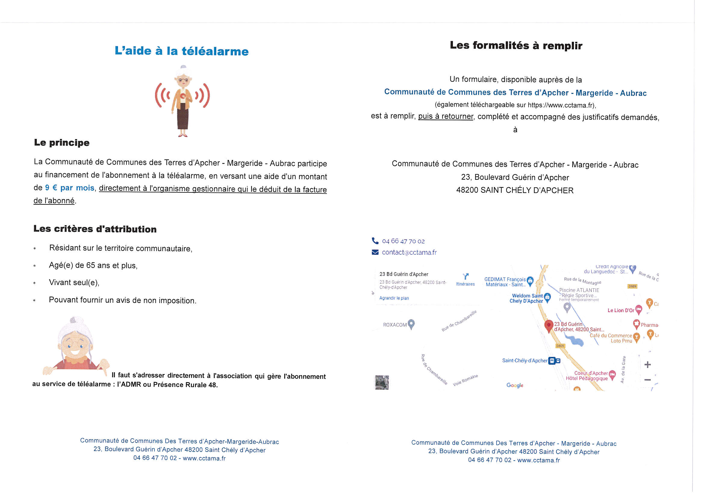 Les demandes (formulaire et justificatifs) sont à déposer avant le 15 novembre 2023, à la Communauté de Communes des Terres d’Apcher-Margeride-Aubrac, 23 boulevard Guérin d’Apcher – 48200 SAINT CHÉLY D’APCHER.